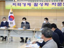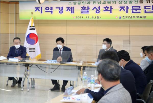코로나19로 인해 어려움을 겪고 있는 지역 업체를 돕기 위해 지난 6월 구성된 전라남도교육청 지역경제활성화 자문단(단장 윤풍식)이 6일 영암교육지원청에서 협의회를 열고 발전 방안을 모색했다.