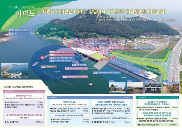 올해에 선정된 사업대상지인 야미도는 고군산군도의 첫 관문지 역할을 하고있는 지역으로 3번의 공모사업 도전을 통해 선정됐다.