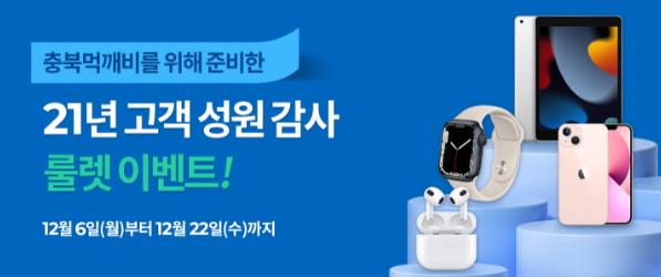 먹깨비 이용자는 6일부터 22일까지 출석체크 및 배달 주문 시 받은 응모권으로 이벤트에 참여 가능하며, 당첨된 고객에게는 아이폰13, 아이패드, 에어팟, 먹깨비 포인트 등의 경품이 제공된다.