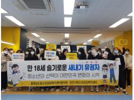 이번 캠페인은 충청남도청소년상담복지센터협의회 공동사업의 일환으로 만 18세 청소년들이 제20대 대통령선거에 첫 선거권을 행사할 수 있게 되면서 대한민국의 유권자로서 청소년들 본인이 소중한 권리를 행사할 수 있다는 것을 안내하고자 마련됐다.