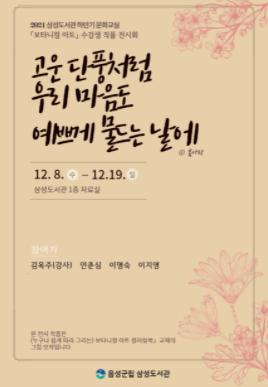 음성군립 삼성도서관에서 오는 8일부터 19일까지 ‘보타니컬 아트’ 수강생 작품을 전시한다.