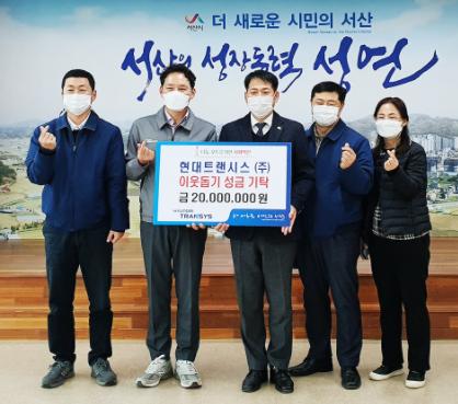 충남 서산시 성연면에 소재한 현대트랜시스(주)가 지난 6일 연말을 맞아 희망 나눔 성금 2천만 원을 성연면에 기탁했다.