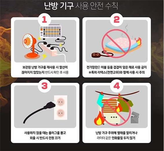 소방서 관계자는 “날이 추워지면서 난방용품 사용 빈도가 높아져 화재도 많이 발생한다”며 “올바른 난방용품 사용으로 겨울철 화재 예방에 시민 모두 동참해 주길 바란다”고 말했다.