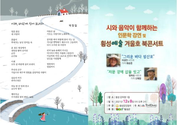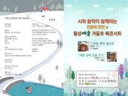 횡성예술의 겨울호 발간을 기념하여 8일 오후 3시, 횡성문화원에서는 시와 음악이 함께하는 인문학 강연과 북콘서트도 열린다.