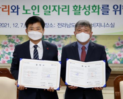 전라남도교육청과 한국시니어클럽협회 전남지회가 7일 전라남도교육청 비즈니스실에서 효율적인 학교환경 관리를 위한 업무협약을 체결했다.