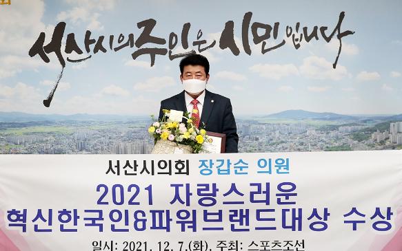 서산시의회 장갑순 의원(재선, 대산·지곡·팔봉)이 자랑스러운 혁신 리더로 선정되는 영예를 안았다.