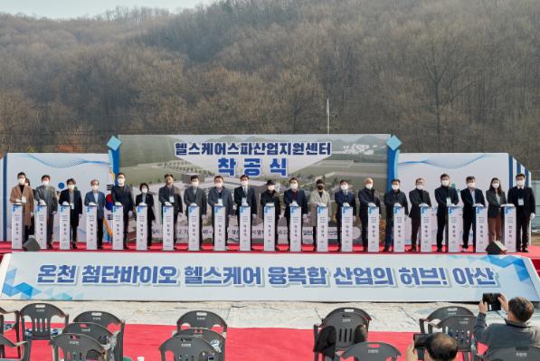 아산시가 7일 온천 재활헬스케어 융복합 산업의 전국적 허브 구축을 위한 ‘헬스케어 스파산업 지원센터’(이하 센터) 착공식을 개최했다.