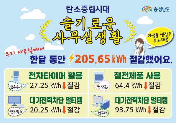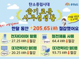 충남도가 범정부 탄소중립 주간(12월 6∼10일)을 맞아 도청 사무실에서 사용 중인 주요 전자제품에 대한 구체적인 에너지 절감 방안을 내놔 눈길을 끌고 있다.
