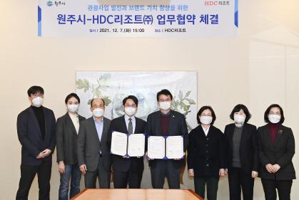 원주시와 HDC리조트(주)는 12월 7일 HDC리조트에서 관광사업 발전과 브랜드 가치 향상을 위한 업무협약을 체결했다.