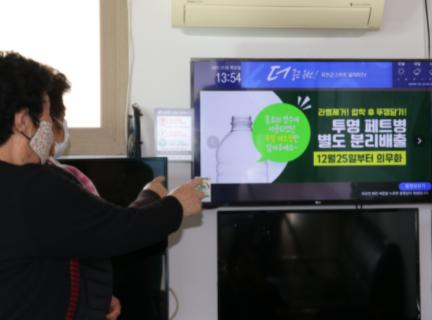 옥천군은 관내 경로당에 스마트알리미 TV를 통해 어르신들에게 다양한 정보를 제공하고 있다.