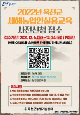 2022년 옥천군새해농업인실용교육은 2022년 1월 7일부터 1월 26일까지 16개 과정으로 18회 추진한다.