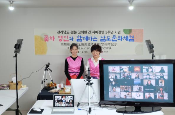 전남도는 고치현과의 자매결연 5주년 기념 대면행사가 코로나19로 전면 취소됨에 따라 지난 11월 전남관광재단과 협업해 온라인을 활용한 비대면 문화체험 프로그램 ‘꽃차 명인과 함께하는 남도문화체험’을 추진했다.