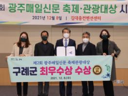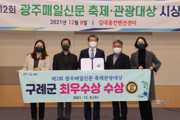 전남 구례군은 8일 광주 김대중컨벤션센터에서 열린 ‘제2회 광주매일신문 축제관광대상’에서 콘텐츠 분야 최우수상을 수상하는 영예를 안았다.