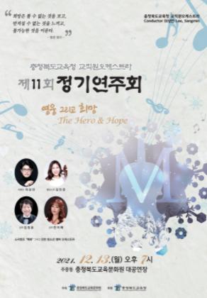 충청북도교육청 교직원오케스트라가 오는 12월 13일 저녁 7시 충청북도교육문화원 대공연장에서 11번째 정기연주회를 갖는다.