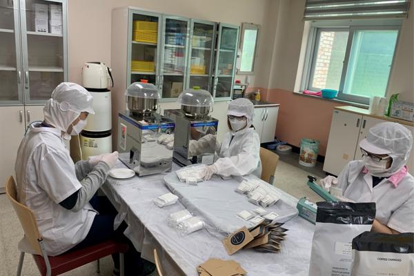 이 중 생산분야는 학생들의 드립백, 건조칩, 학교기업 원두, 종이컵 등을 학생들이 직접 제작하여 판매하고 있다.