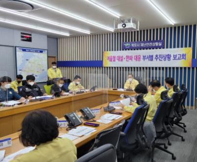 시는 지난 8일 강효석 부시장 주재로 부서별 추진사항 보고회를 열고 관련 부서장으로부터 대설·한파 등에 대한 대비 상황을 공유하고, 적극적인 대처에 뜻을 함께 했다.