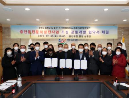 홍천군과 율전1리·㈜홍천율전풍력발전은 12월 9일 ‘홍천 율전풍력발전사업단지 조성’을 위한 업무협약을 체결했다.