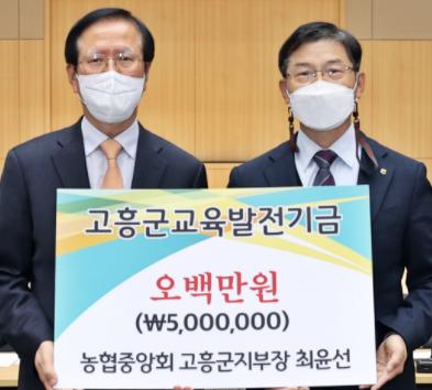 이외에도 (유)봉황전력(3백만원), 한국여성농업인 고흥군연합회(1백만원), 고흥솔라파크(주)(1백만원), 초록봄농장(1백만원)에서 교육발전기금을 기탁했다.