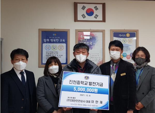 기탁자는 ㈜대한안전상사 이만제 대표로 진천중 제33회 졸업생이다.