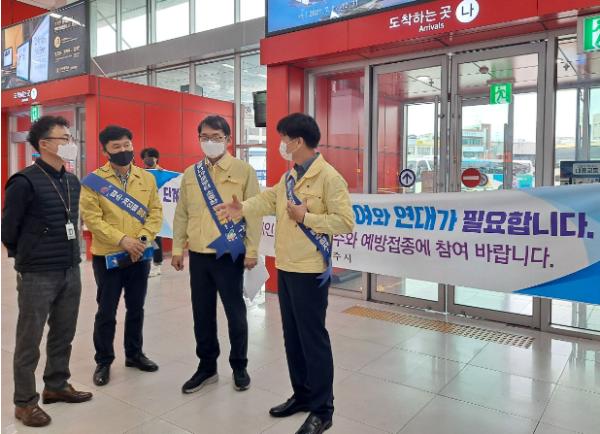 최근 전주지역 코로나19 확진자가 급증한 가운데 전주시가 유동인구가 많은 터미널과 복지시설 등 다중이용시설에 대한 방역 현장점검을 펼쳤다.