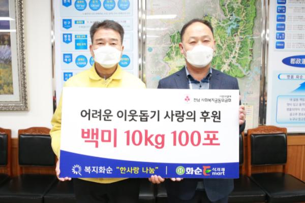 화순E식자재마트는 나눔 실천과 수익의 사회 환원을 위해 2016년부터 백미, 생활용품 등을 꾸준히 기부해 왔다.