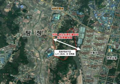 ‘탕정동산-천안불당 도로’ 조성 추진지역은 아산탕정 동덕사거리에서 KTX선로를 넘어 신불당과 연결되는 연장 약 1.2km 구간으로, 지방도 628호 상습정체 해결, 편리하고 안전한 출퇴근길 확보 등 개설 필요성이 꾸준히 요구돼왔던 지역이다.