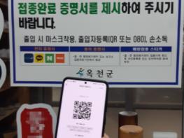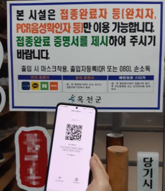 옥천군은 지난 6일부터 시행한 정부의 단계적 일상회복 강화 조치에 따라 접종증명·음성확인제 의무적용 시설에 추가된 1,300여 개소의 식당·카페 등에 안내 스티커를 제작 ? 배부하여 이용객의 혼란을 줄인다.
