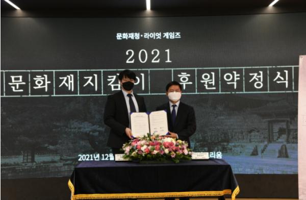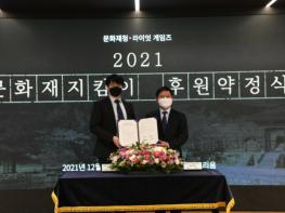 문화재청은 문화재지킴이 협약기업인 온라인 게임 개발·서비스사인 ‘라이엇 게임즈(Riot Games; 한국대표 조혁진)’와 함께 2021년도 후원약정식을 9일 오후 3시 라이엇 게임즈 사옥 내 오디토리움(서울 강남구)에서 개최하였다.