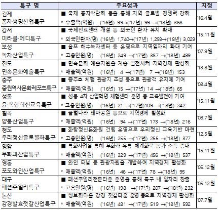 김제 종자생명산업특구, 강서 미라클메디특구, 보성 녹차산업특구 등 12개 지역특화발전특구가 규제특례 활용 기반 일자리 창출, 매출 확대 등 지역경제 활성화 성과가 우수한 것으로 나타났다.