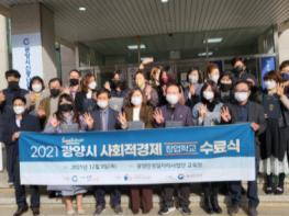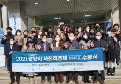 광양시는 지난 9일 광양만권일자리사업단 교육장에서 ‘2021년 광양시 사회적경제 창업학교’ 기본과정 수료식을 가졌으며, 교육에 참여한 27명 중 80% 이상 출석한 23명이 수료증을 받았다.