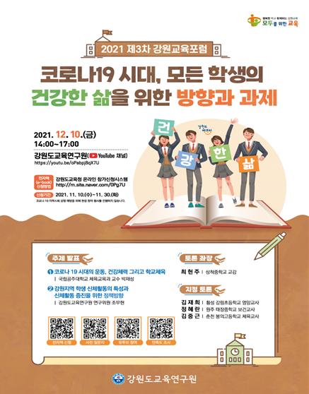 강원도교육연구원은 12월 10일 오후 2시, 2021년 제3차 강원교육포럼을 온라인으로 개최한다.