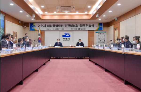 여수시는 지난 9일 11시 여수시청 상황실에서 ‘여수시 해상풍력발전 민관협의회’ 위촉식을 가졌다.