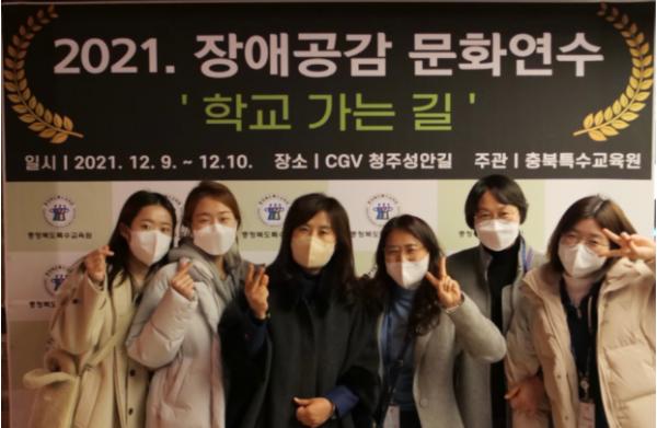 충청북도특수교육원은 12월 9일, 12월 10일 총 4회에 걸쳐 충북교육청 소속 교직원 200여명을 대상으로 CGV 청주성안길에서 영화 ‘학교 가는 길’을 상영하는 장애공감 문화연수를 운영하였다.