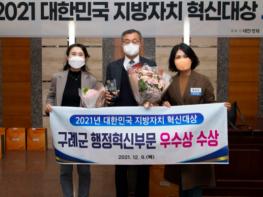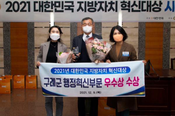전남 구례군이 9일 서울 강남구 건설회관에서 열린 ‘2021 대한민국 지방자치 혁신대상’에서 행정혁신부문 우수상을 수상했다.