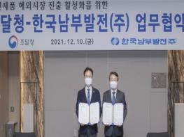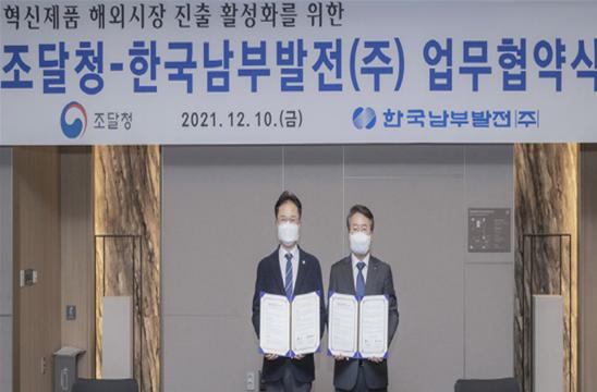 조달청과 한국남부발전㈜은 10일 오전 서울 JW메리어트호텔에서 ‘혁신제품 해외시장 진출 지원 업무협약’을 체결했다.