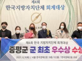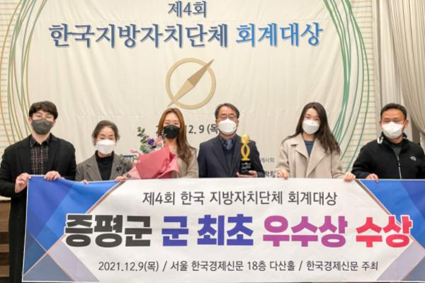 증평군이 9일 열린 제4회 한국지방자치단체 회계대상에서 기초 자치단체 부문 군 단위 최초로 우수상을 수상하는 영예를 안았다.