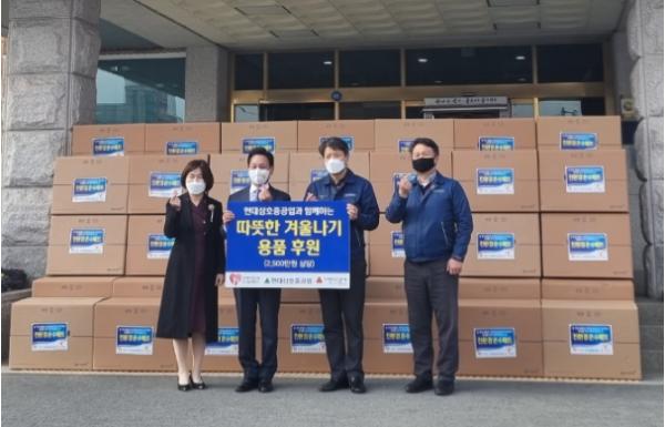 현대삼호중공업 한정동 전무는 “연말 추운 겨울철에 어려움을 겪고 있는 이웃들에게 따뜻하게 지낼 수 있도록 직원들이 자발적으로 기부하여 준비했다”며 “앞으로도 꾸준히 지역사회를 위해 나눔활동을 이어 가겠다”는 뜻을 밝혔다.