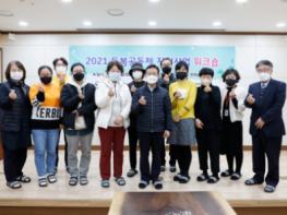 이날 ‘돌봄공동체 워크숍’은 이차영 괴산군수, 건강가정·다문화가족지원센터 한석수 센터장, 괴산군 돌봄공동체 5팀, 돌봄공동체 담당인력 등 40여 명이 참석한 가운데, 돌봄 공동체 지원 사업의 정립과 나아갈 방향을 제시하는 교육을 실시하고, 2021년 돌봄 공동체 사업 진행 후 느낀 점을 공유하는 간담회를 진행했다.