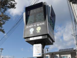 전금순 환경과장은 “미세먼지 신호등은 대기오염 상태를 직관적으로 표출해 세대 구분 없이 누구나 쉽게 인식할 수 있고, 다양한 환경정보와 기상정보를 주민들에게 알려줄 수 있는 장점이 있다.”며 “미세먼지 신호등을 보면 누구나 즉시 환경정보와 기상정보를 알 수 있어 주민들이 이에 대한 대비를 할 수 있도록 돕기 때문에 주민건강 증진에 기여할 것으로 기대한다.”고 말했다.