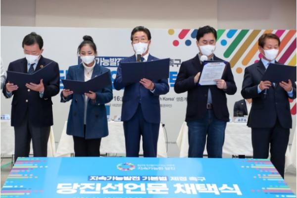 특히 지난 11월에는 지속가능발전기업협의회, 전국지속가능발전협의회, 한국지속가능발전학회, SDSN Korea 등 전국 9개 기관단체·국제기구와 110개 청년단체가 당진에 모여 ‘지속가능발전기본법 제정 촉구 당진선언문’을 채택하기도 했다.