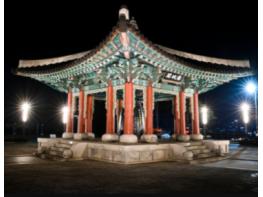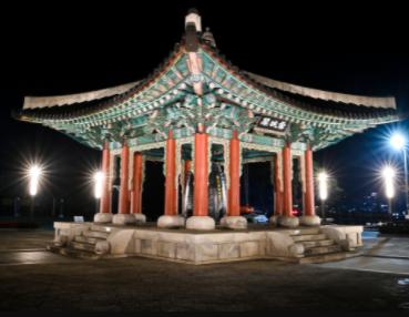 조명은 은은하고 따뜻한 주광색 계열로 교체해 설성각 처마의 전체적인 선형과 음성군민대종의 곡선미를 돋보이게 했다.