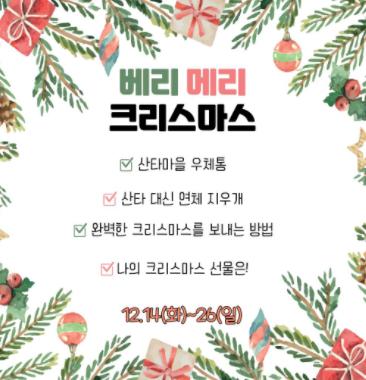 이번 행사는 소중한 사람에게 안부를 전하는 '산타마을 우체통', 크리스마스가 있는 한 주 동안 대출 정지를 해제해주는 '산타 대신 연체 지우개', 크리스마스를 주제로 한 도서 전시 '완벽한 크리스마스를 보내는 방법' 등 크리스마스 분위기를 느낄 수 있는 재미있고 다양한 프로그램으로 진행될 예정이다.