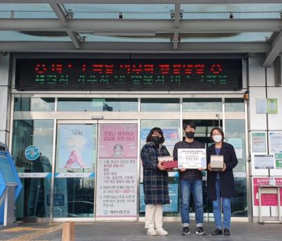 제천청소년문화의집은 지역 내 코로나19 차단을 위해 불철주야 일하고 있는 제천시보건소 감염병관리팀 노고에 감사의 마음을 담아 응원 물품을 전달했다.