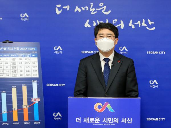 맹정호 서산시장이 13일 ‘역대 최대 정부예산 확보 언론 브리핑’을 열고 “어려운 시기 역대 최대 정부예산 확보라는 기쁜 소식을 전하게 돼 매우 뜻깊다”고 말문을 열었다.