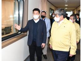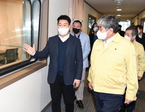 한상혁 위원장은 SBS로부터 코로나19 확산방지를 위한 SBS 방역체계에 대해 설명을 들은 후 뉴스 및 라디오 스튜디오, 주조정실 등 방송제작현장에 대한 방역상태를 점검했다.