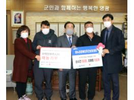 하누리 장애인주간보호센터와 사)전남지적장애인복지협회 영광군지부는 지난 10일 직접 만든 제작물품인 손수건 150장, 티매트 100개를 영광군에 기탁하였다.