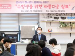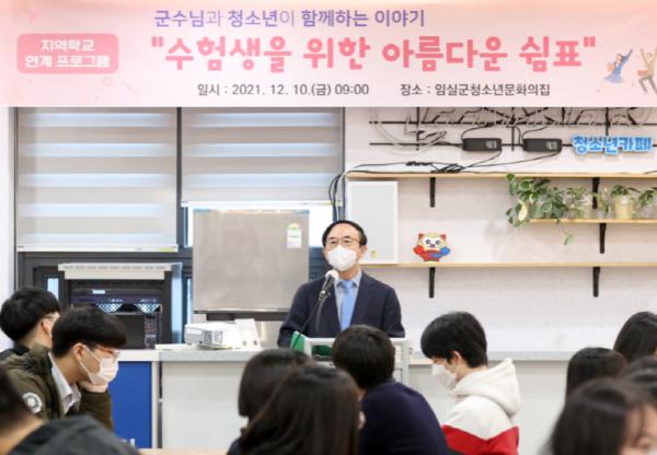 군은 심 민 군수와 함께 청소년문화의집에서 고등학교 3학년 70여 명을 대상으로 지역학교 연계프로그램인‘수험생을 위한 아름다운 쉼표’행사를 열었다.