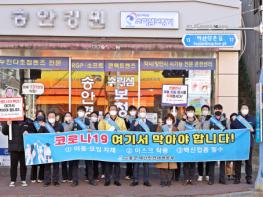 캠페인을 통해 ‘코로나19 여기서 막아야 합니다!’라는 슬로건으로 ?이동?모임 자제 ?마스크 착용 ?백신접종 필수, 개인방역수칙 준수 등 현수막, 어깨띠, 피켓 홍보용품을 활용하여 집중 홍보 하였다.