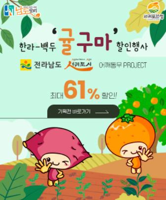 전라남도는 제주 서귀포시와 함께 전남 고구마 생산 농가와 서귀포 감귤 농가를 돕기 위해 전남 대표 온라인 쇼핑몰 남도장터에서 ‘한라-백두 귤구마 공동 특판전’을 펼친다.