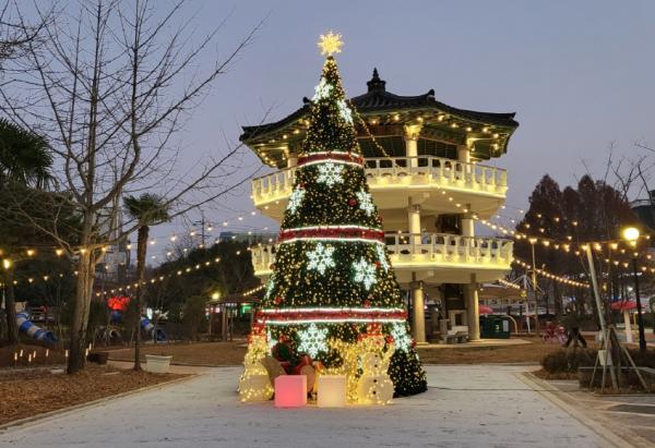 무안군이 지난 7일 불무공원 리모델링 사업으로 추진한 야간경관 개선 공사와 크리스마스 대형 트리 설치를 성공적으로 마무리했다고 밝혔다.